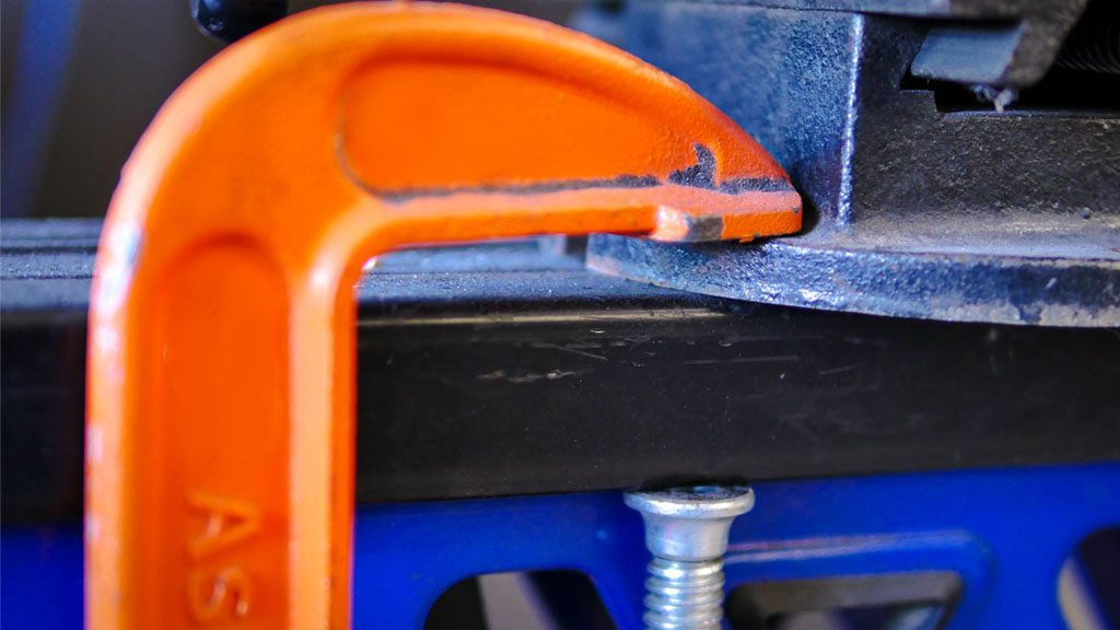 โต๊ะงานงานที่ไม่มีประสิทธิภาพ โครงเครงอยู่ตลอดเวลา อาจทำให้แคลมป์ของคุณหลุดออกได้ ถึงแม้ว่าคุณจะพยายามอย่างเต็มที่แล้วก็ตาม และอาจจะทำให้คุณปวดหัวมากในภายหลังได้ ด้วยเหตุผลนี้เองคุณควรใช้โต๊ะที่เป็นเหล็กหล่อหรือโต๊ะงานไม้ที่มีประสิทธิภาพได้ เพื่อประกอบและต้องแน่ใจว่าได้ปกป้องกาวที่ก่อให้เกิดสนิมโดยการวางกระดาษ หรือสิ่งกีดขวางประเภทอื่นๆหรือไม่นั่นเอง